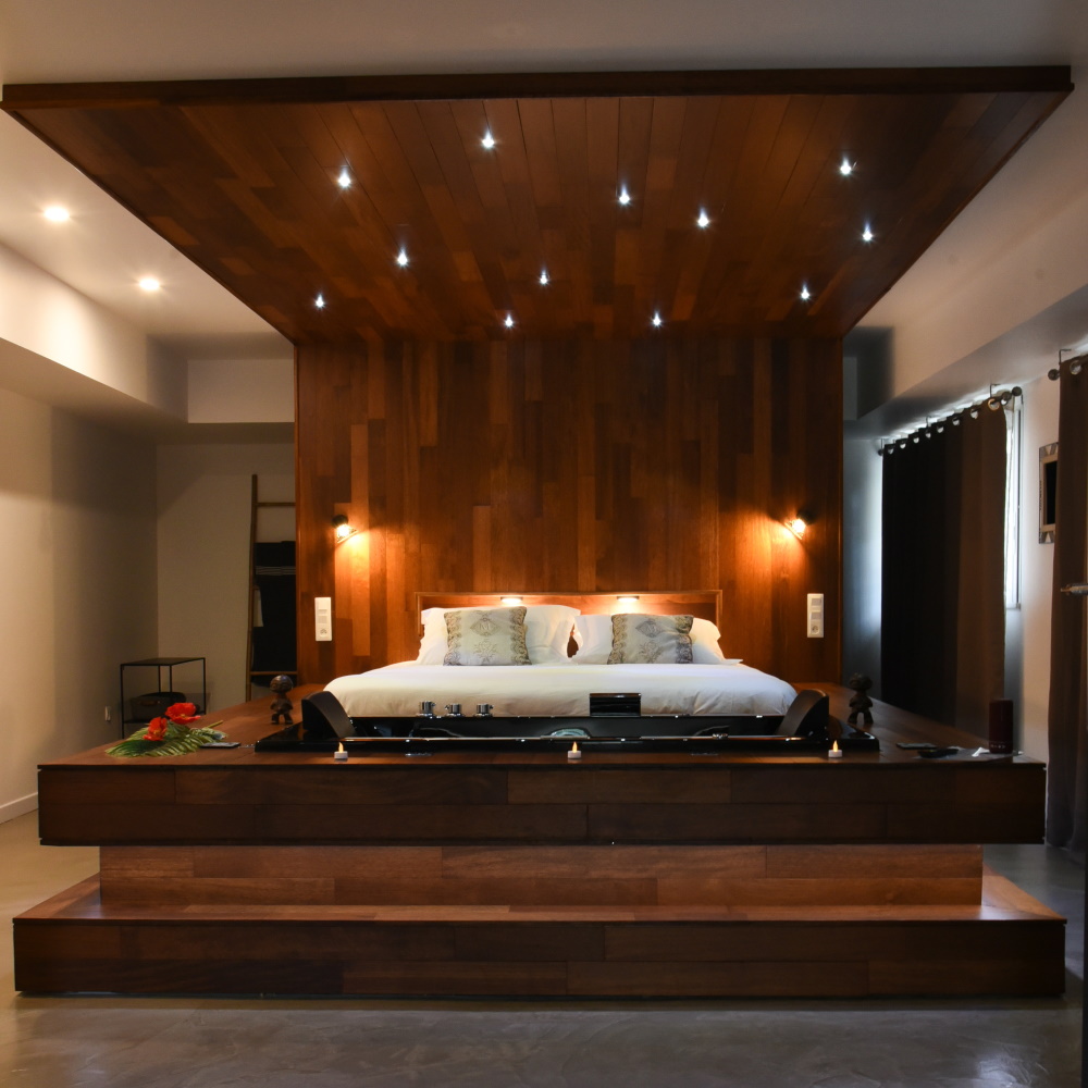 Une invitation au voyage, à la détente pour cette suite de 5O m2 à l’atmosphère chaleureuse. Son grand lit en bois exotique intègre une baignoire balnéothérapie pour un vrai moment cocooning.